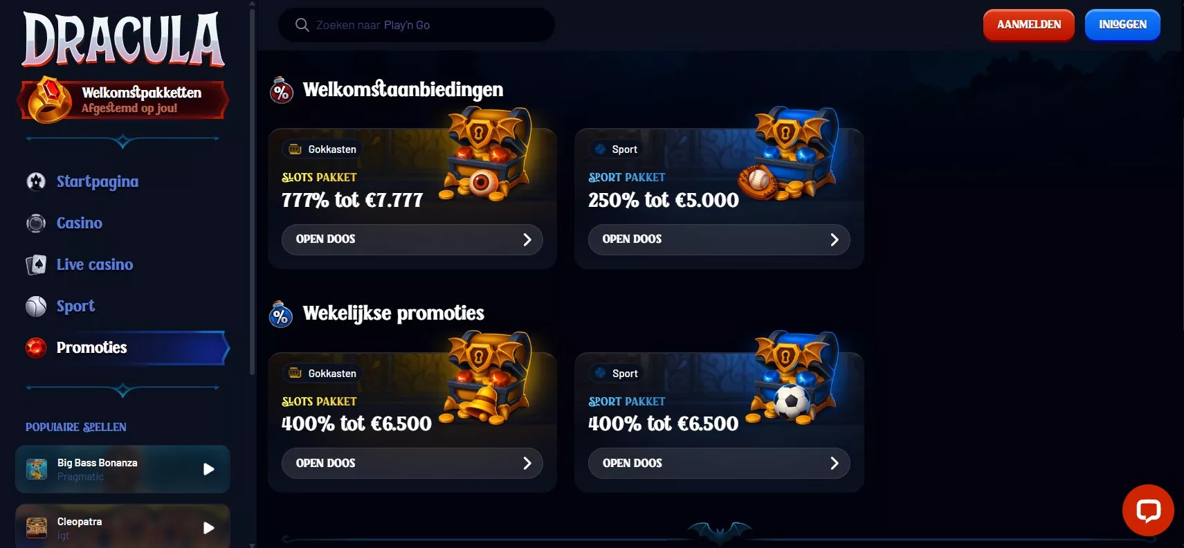 Bij Dracula Casino online spel zijn verschillende soorten beloningen actief, die worden verdeeld afhankelijk van wat u prefereert. Het systeem is vrij flexibel opgezet: