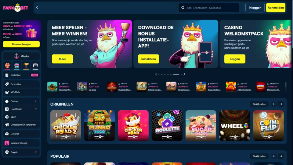 In deze beoordeling van Fanobet casino online in Nederland gaan we je alles vertellen over hoe spelen bij deze bookmaker werkt. Het is sinds 2025 mogelijk om hier in te zetten en je kunt daarbij kiezen uit een groot aantal spellen. Na je registratie is het eenvoudig om een storting te doen met diverse betaalmethoden en kun je ook diverse bonussen claimen. In het onderstaande gedeelte leggen we je uitgebreid uit hoe dit alles werkt.