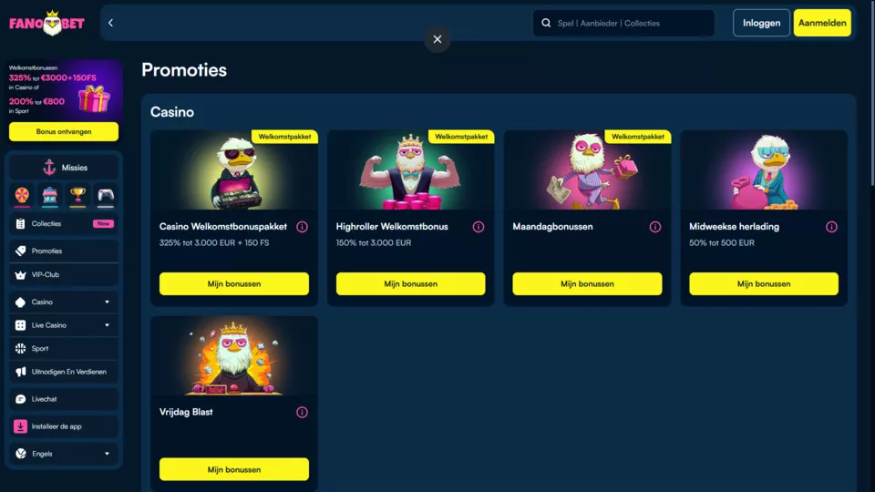 Er kan met een groot aantal nieuwe bonussen bij Fanobet casino in 2025 worden gespeeld. Beginnende en ervaren spelers krijgen de kans om allerlei promoties te claimen terwijl er ook aanbiedingen zijn die wekelijks terugkeren. Hieronder hebben we de belangrijkste bonussen voor je geselecteerd.