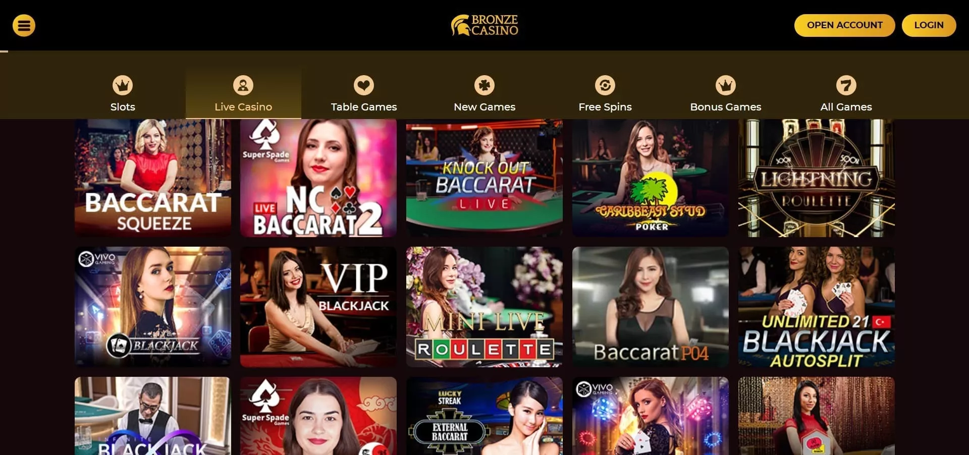 Het Bronze casino is een relatief nieuw casino. Het heeft een uitgebreid aanbod aan spellen waaronder in de categorie live casino en video slots. Voor veel spelers is het live casino echt het ultieme omdat je dan met echte medespelers speelt. Je kunt er ook geweldige prijzen mee winnen. Het Bronze casino probeert er echt te zijn voor haar nieuwe spelers, het heeft zelfs een apart kopje met ‘Getting Started’ toevoegen aan de homepage van de website. Je kunt je vervolgens eenvoudig registeren en beginnen met spelen.