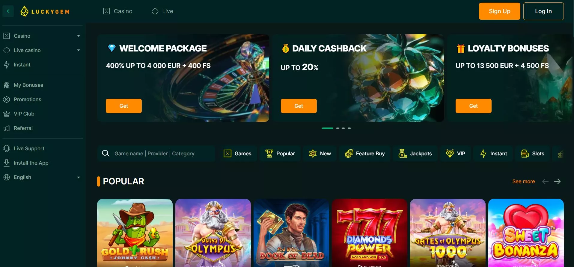Luckygem online spellen bevatten meer dan 3000 spellen van meer dan 50 toonaangevende softwareontwikkelaars. Een ruime keuze aan gokkasten en bordspellen voldoet aan de behoeften van iedere speler die de voorkeur geeft aan hoogwaardige speloplossingen.