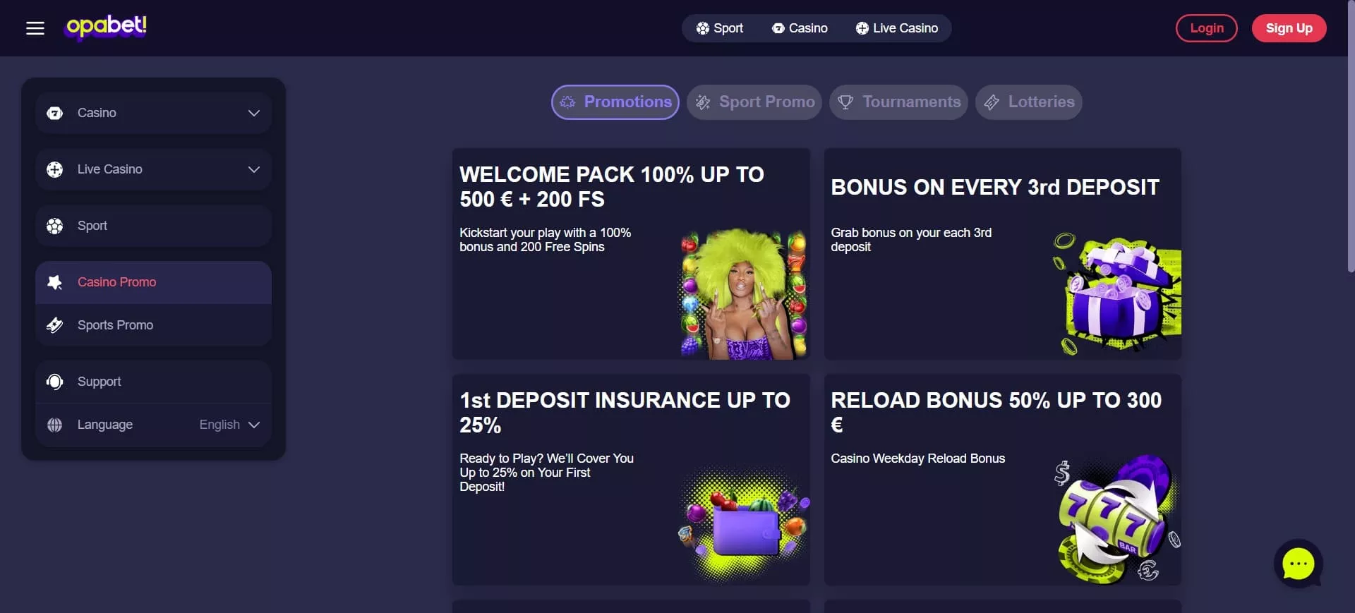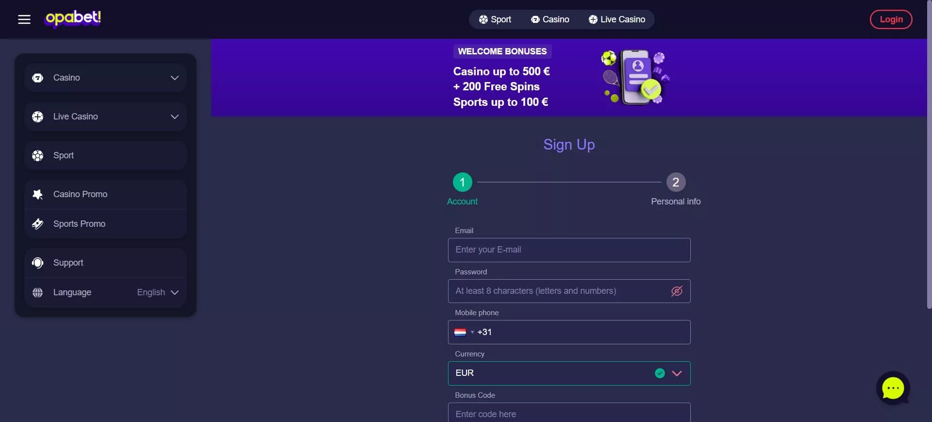 Speciaal voor de liefhebbers van sportweddenschappen is er een alternatieve welkomstbonus waarbij het bedrag van je eerste storting wordt verdubbeld tot 100 euro. Gebruik de bonuscode OPASPORT en stort minimaal 10 euro om deze te claimen. Binnen 30 dagen moet de bonus 8 keer worden ingezet voordat opname mogelijk is.