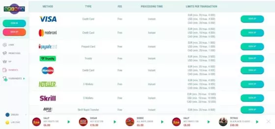 Bij dit online casino is het mogelijk om te betalen via je bankrekening, met een creditcard, of met een online wallet. Ook kun je gebruik maken van prepaid kaarten indien dit je voorkeur heeft.