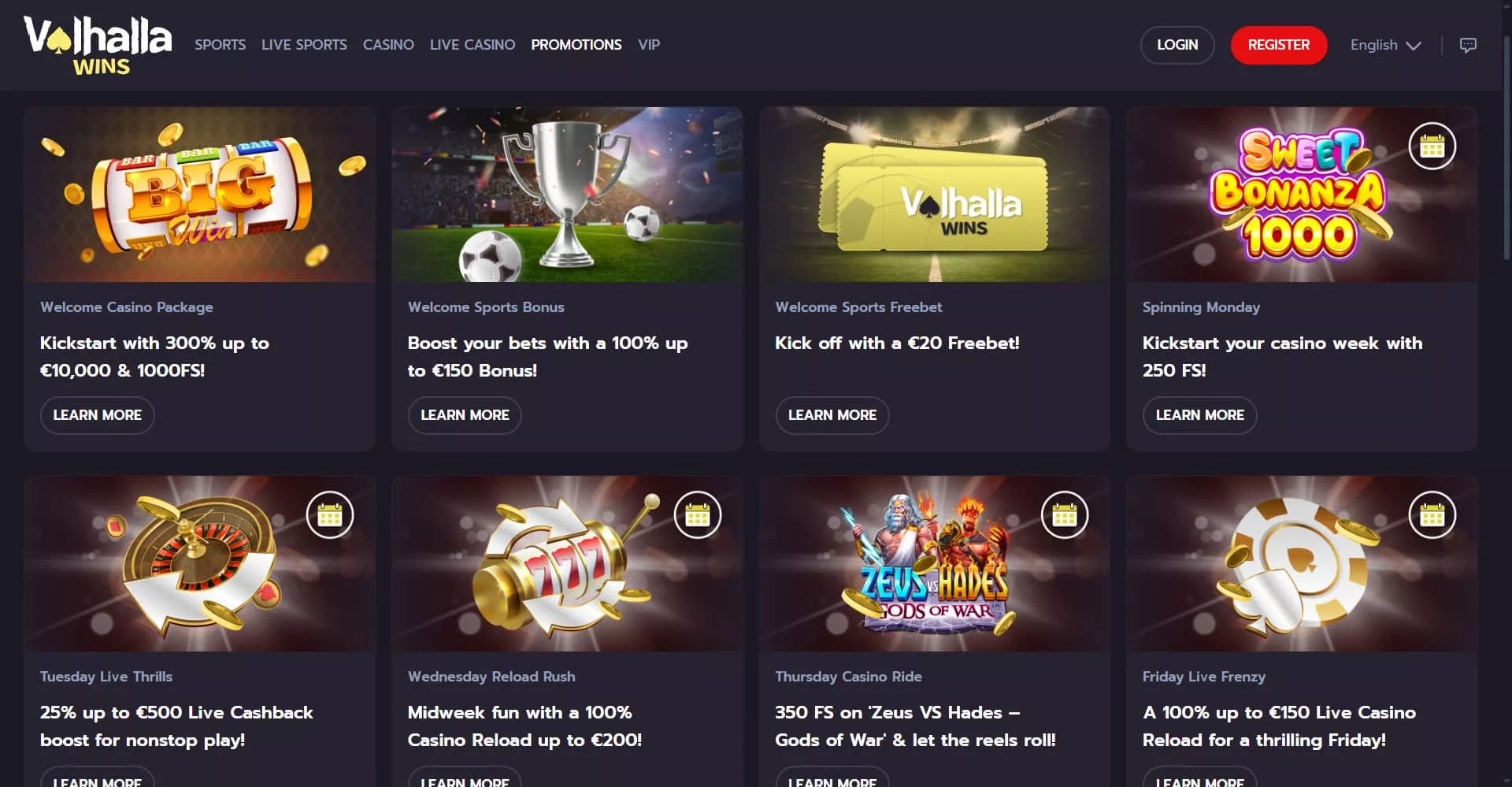 Inzetten met nieuwe bonussen bij Valhalla Wins casino in 2025 is ook mogelijk. Na registratie kun je gebruik maken van meerdere promoties op de website, waarvan deze het meest in het oog springen:
